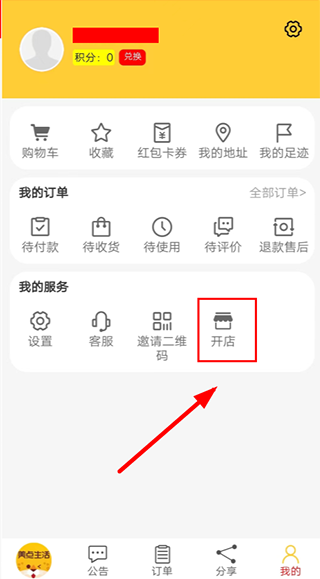 2、跳转至个人信息页面,点击【开店】