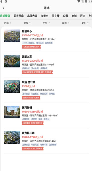 2、点击热销楼盘,可以看到最近很火的房屋信息
