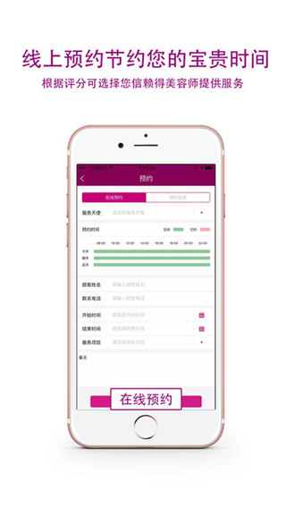 可通过克克美APP在线预约美容师的服务,在线查看美容师可预约的服务时间,消息实时推送给选择预约的美容师,提醒做好服务的准备工作;预约状态分为“待服务、服务中、已完成”,方便用户查看自己的服务状态;用户也可以直接点击预约列表中的电话与聊天功能,及时与预约的美容师进行沟通,使服务更周到。
