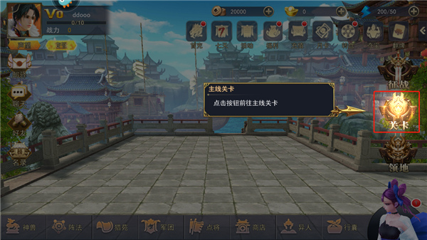 1、在游戏界面点击“主线关卡”,点击按钮前往主线关卡。