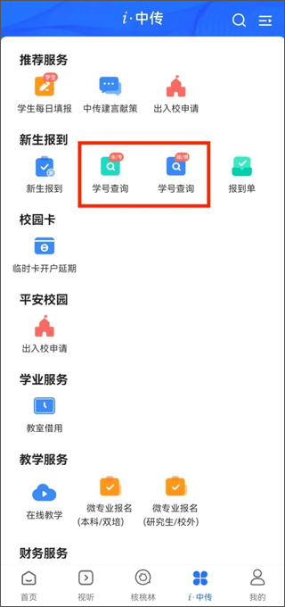 1、在本站下载中国传媒大学官方版app,打开APP,在免注册登录状态下,点击“i·中传”版块进行学号查询
