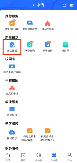 3、3. 账号激活后,打开中国传媒大学APP,登录后选择“i·中传”版块,点击“新生报到”,即可进入新生报到系统。(新生选房系统开放时间请关注中国传媒大学官方微信)