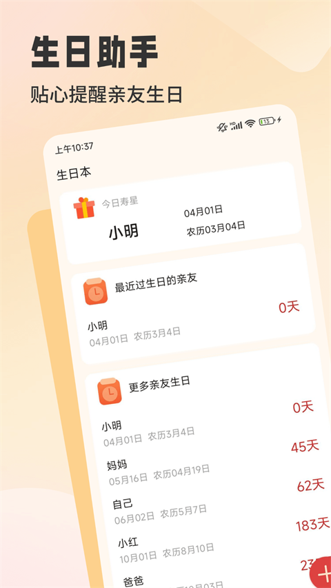 4、生日助手:新增生日助手,贴心提醒亲友生日时刻关护。