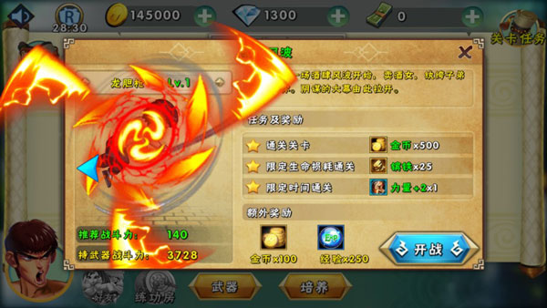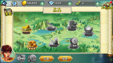 游戏主打闯关推图为主线,赋予刀枪棍棒拳等多种武器,提升武器星级愈加强大,而且技能特效更加的炫酷哦。