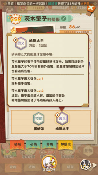 拥有奥义二技能后,茨木兼顾了单体和群体,虽然群体伤害的触发方式较为复杂,但是绝对是最值得升级到2级奥义的式神。