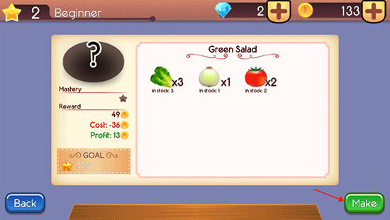 2、点击未解锁的菜,点击“make”进行解锁。
