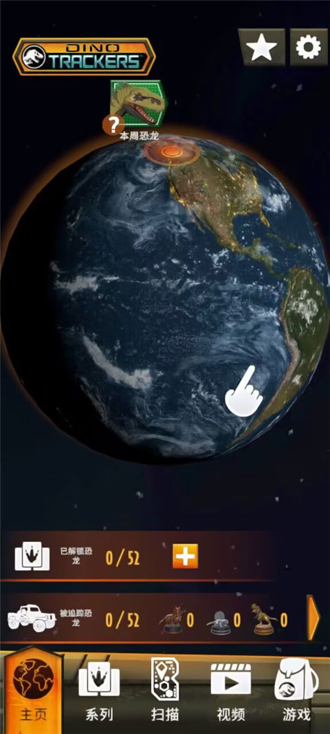 1、下载安装好侏罗纪世界真相中文版之后,进入游戏主界面,点击地球上的恐龙图标;
