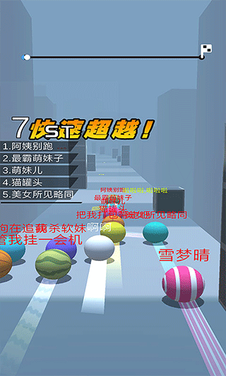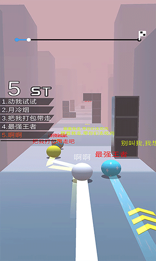3、在跑酷过程中玩家需要集中精神控制球球躲避眼前的障碍物,利用途中的加速带可以一路加速前进,直到上方的进度条达到终点即获得胜利;
