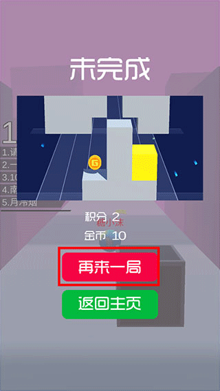 4、如果没有躲开道路上的障碍物,则本局游戏未完成(小编玩了10几次都没有跑完全程),你可以吗?来试试吧!
