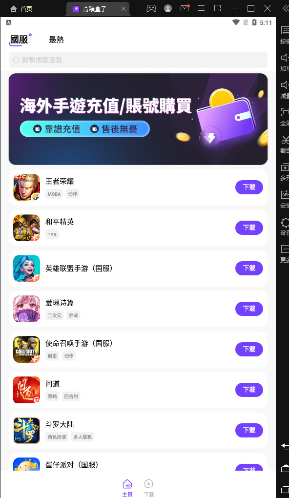 奇迹盒子电脑版是借助模拟器运行的一款提供海量游戏下载安装的软件平台。该游戏致力于为爱玩游戏的人提供一个内容丰富、安全、免费的游戏下载盒子,而且具有适用于全平台的软硬件、内置专属玩家的个性化功能,让玩家免登录,就可获取全网最新、最热门的游戏资源。同时奇迹盒子电脑版以玩家为先,积极更新迭代软件版本,以保证玩家的诉求得到尊重和满足,创造一个有归属感的玩家空间。除此之外,该软件支持游戏名称智能搜索,榜单题材分类清楚明了;下载过的游戏自动检测最新版本一键更新,各类国服、网游、单机游戏一应俱全,快来本站下载体验吧~