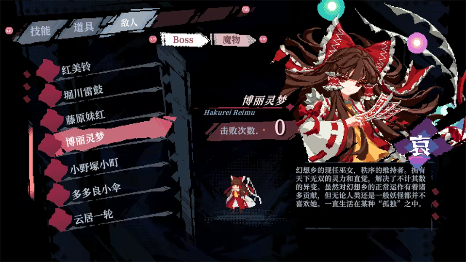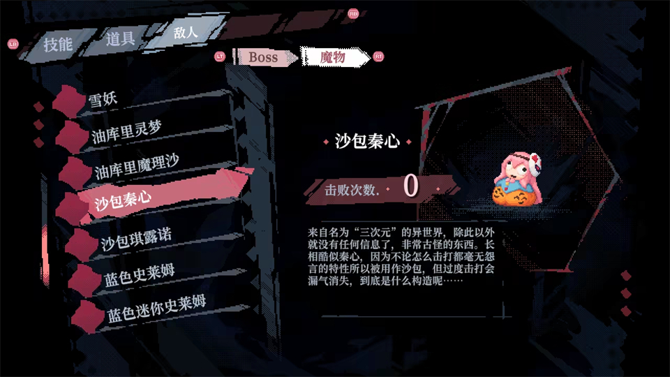再加上随机生成的地图和道具,每次玩都会有新的体验,这种rogue-lite的玩法挺吸引人的。尤其是BOSS战部分,击败后还能解锁成为可操作角色,感觉游戏性会很高。另外,各种收集要素也很齐全,图鉴、技能、音乐都能满足收集控的需求。