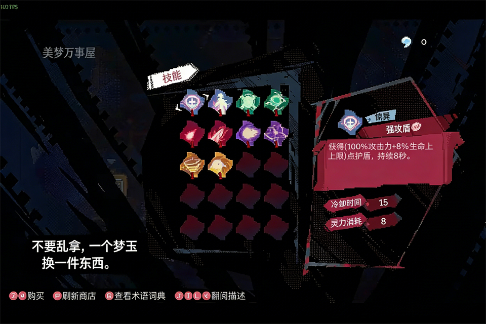 在进入战斗之前,可以消耗两种不同的货币,购买道具或者技能,可以让我们开局既是爽局。