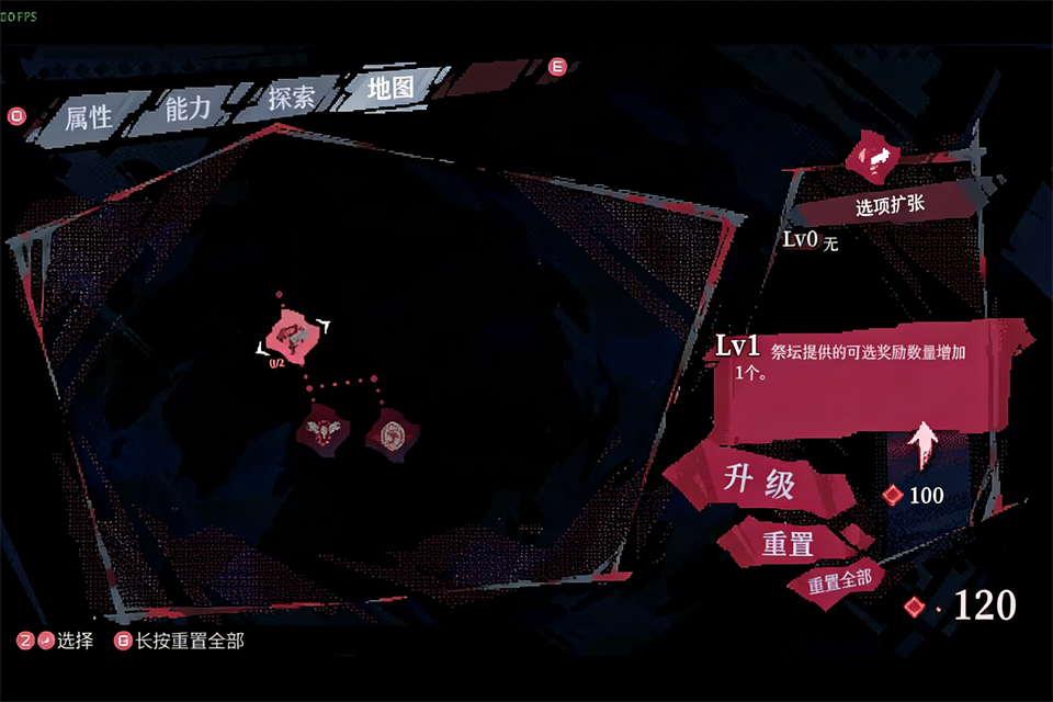 各种局外成长也比较丰富,分为四大种类,属性,能力,探索和地图。各自对应不同的加成,建议优先选择能力,可以解锁几个新技能。