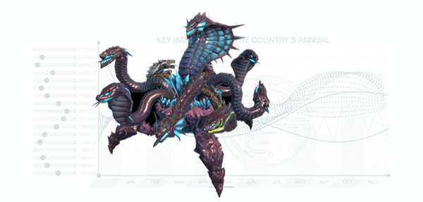 希腊神话中的海之霸主,于世界之树之战时突然降临伊特尼尔,给毫无防备的人类居住地带来了毁灭性的破坏。海德拉的九颗头颅拥有各自独立的意志与能力,据说它们在同一时间发出的怒吼能够瞬间摧毁一座城市。