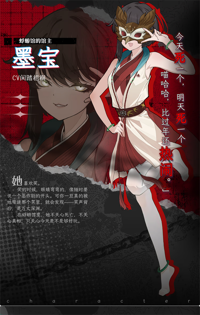 她喜欢笑。笑的时候,眼睛弯弯的,像随时要说一个恶作剧的开头。可你一旦真的被她带进那个笑里,就会发现---笑声背后,是万丈深渊。在蜉蝣馆里,她不关心死亡,不关心真相,只关心今天是不是够好玩。