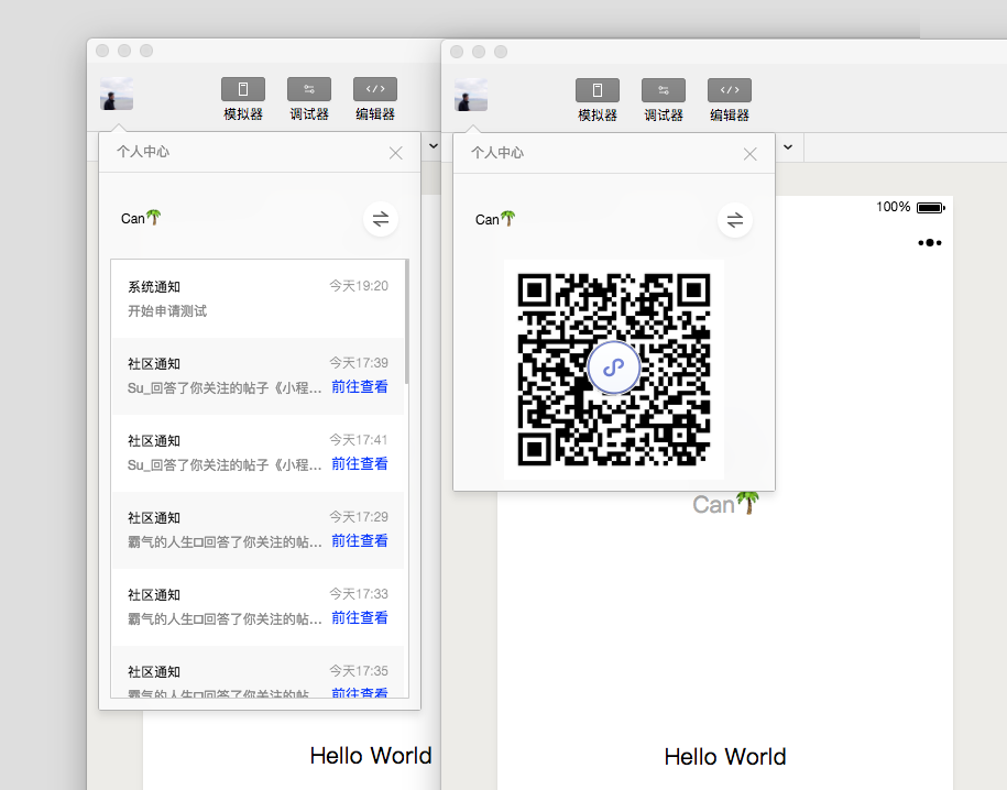 模拟器可以模拟小程序在微信客户端的表现。小程序的代码通过编译后可以在模拟器上直接运行。
