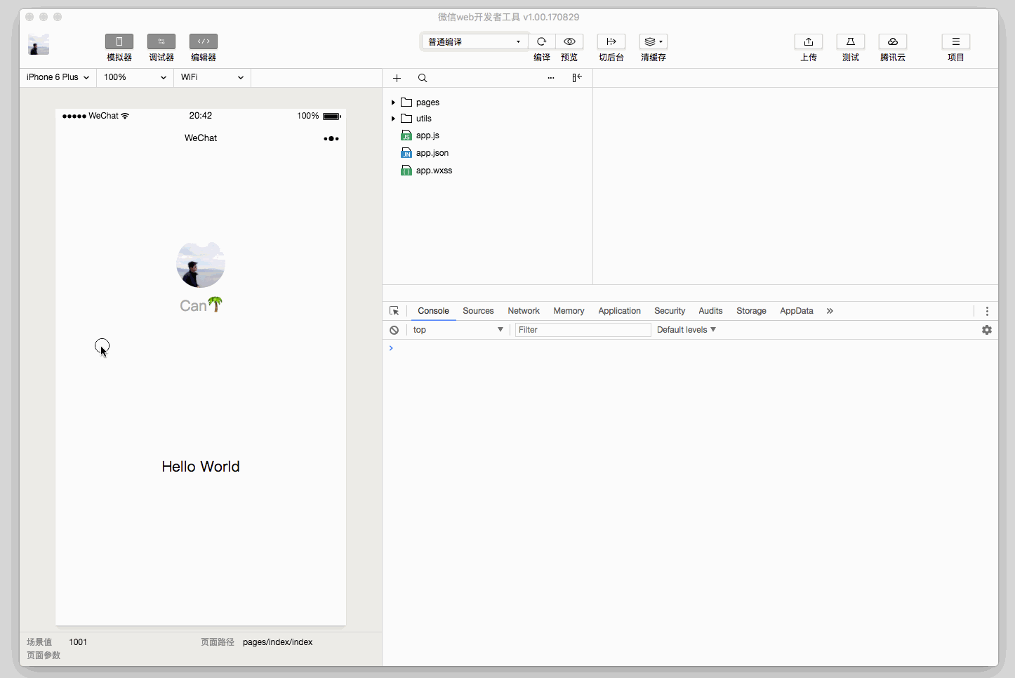 在模拟器底部的状态栏,可以直观地看到当前运行小程序的场景值,页面路径及页面参数。