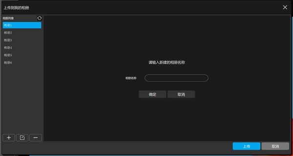 若相册列表为空,则用户需首先添加相册,才能上传。点击”添加相册“按钮,对话框如下图所示: