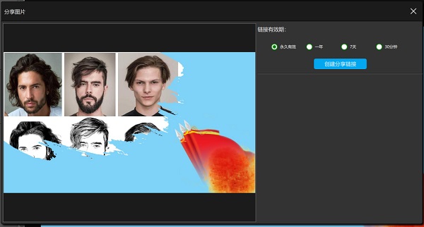 点击“创建分享链接”后,软件根据当前选择的有效生成分享的链接,如下图所示: