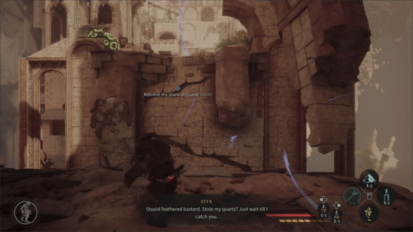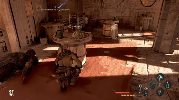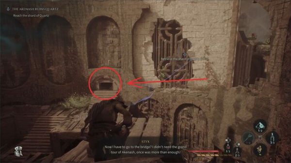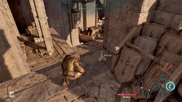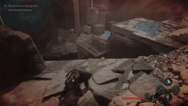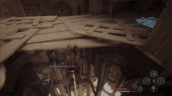 杀死怪物并搜寻区域。你会找到一个生命瓶和一些制作材料。再靠近那只拿着石英的鸟,它会最后一次飞走。要跟着它走,你得穿过墙上的洞。