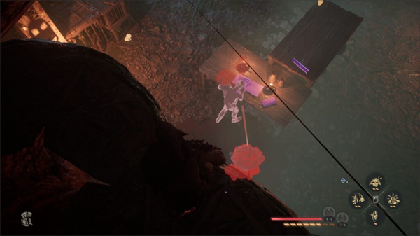 杀死前两只后,躲到台阶后面,挂在这个岩台上。如果你使用琥珀视野,你将能看到下面另一个生物。悬挂在悬崖边,然后跳向生物,并在空中按[X]键将其击杀。