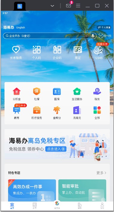 这个海易办电脑版真的太方便了吧!它是数字海南有限公司开发的省级政务服务软件,专为安卓用户打造,运行在模拟器上。主要功能是让政府服务更高效,企业和民众办事更便捷。比如说,你可以在上面查社保、医保、公积金,处理交通违章,甚至还能预约挂号看病,查看电子健康档案,简直是个全能工具。