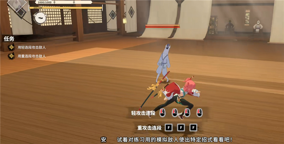 鼠标右键可轻攻击四连段。
