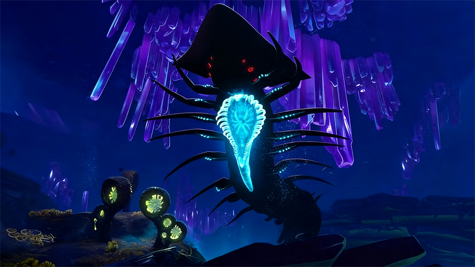 游戏中第二大凶猛的水下生物,暗影利维坦能让毫无准备的潜水员心生真正的恐惧。这种巨大的龙虾状生物潜伏在水晶洞穴和制造者洞穴周围,你绝对不想在它出现时待在附近。