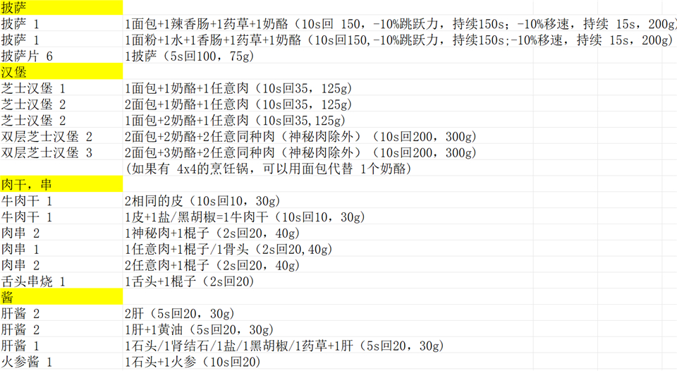 1)披萨、汉堡、肉干、串、酱