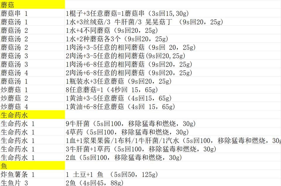 8)蘑菇、生命药水、鱼