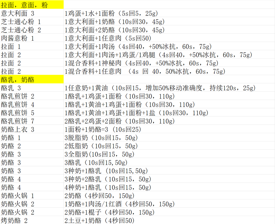 7)拉面、意面、粉、酪乳、奶酪
