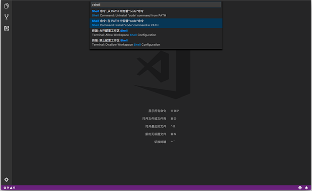 - 如果你是在 macOS 上使用,安装后打开命令面板,搜索Shell 命令:在 PATH 中安装 “Code” 命令并执行,然后重启终端模拟就可以了。