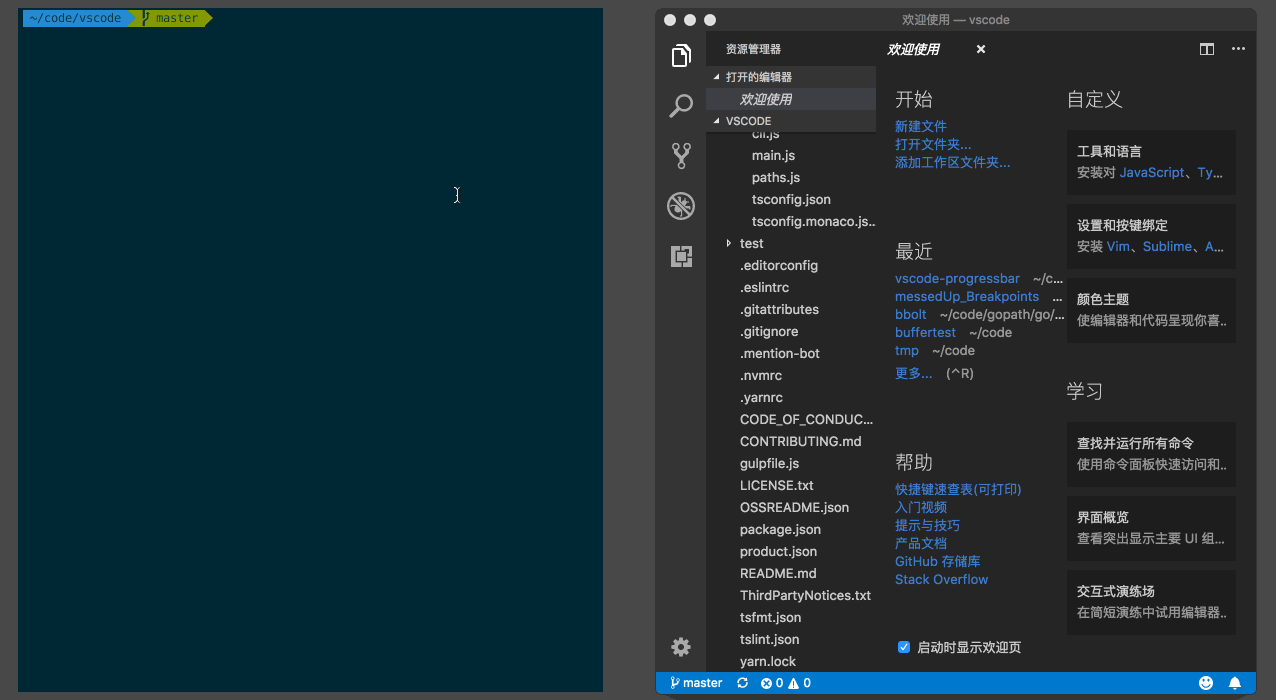 - 接下来我们看一下命令行的使用。命令行你应该不陌生,我们脑海中的大神级程序员都是可以在Linux中随意敲打长串的命令,或是与黑客斗智斗勇,或是解决某个紧急的线上问题。而对于VS Code而言,最基础的命令行当然是让你能够不动鼠标,就能快速打开界面了。