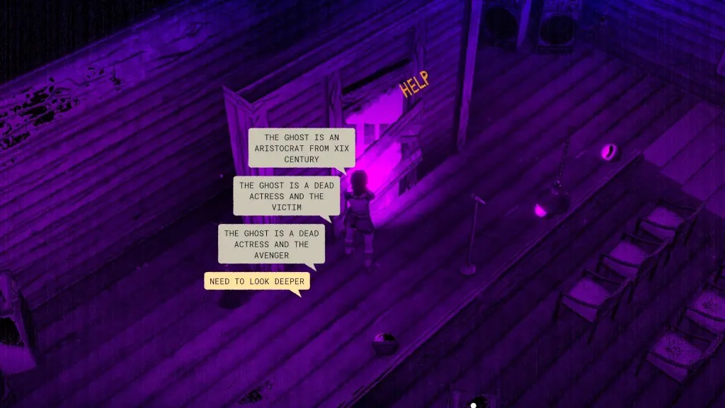 20、接着前往幽灵先前站立位置后方的那扇门,并进行互动;正确答案选择:“The Ghost is a Dead Actress And The Victim”;
