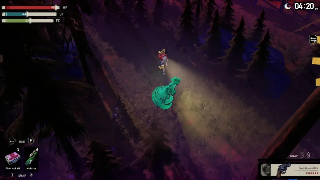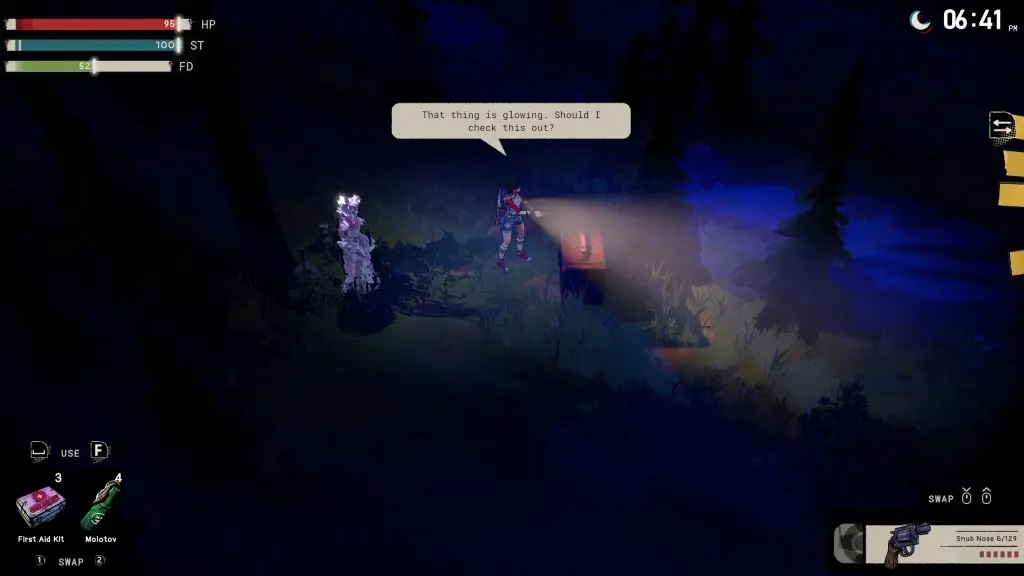 动态的日夜循环会改变世界。 善用白天来探索、搜集资源、制作你需要的东西并做好准备。 日落后,真正的梦魇才会出现。 敌人更多、更强且更凶恶。 只用手电筒的话,很难跨越这片大地。 有时候,最好的策略是找个落脚点等待日出。