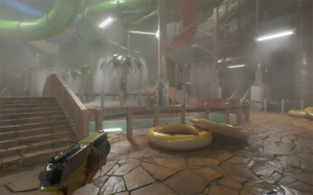探索地下室、水上乐园、儿童游乐区等地的秘密,这一切均通过虚幻引擎5的Lumen光照与Nanite几何技术,以meticulous的细节呈现。