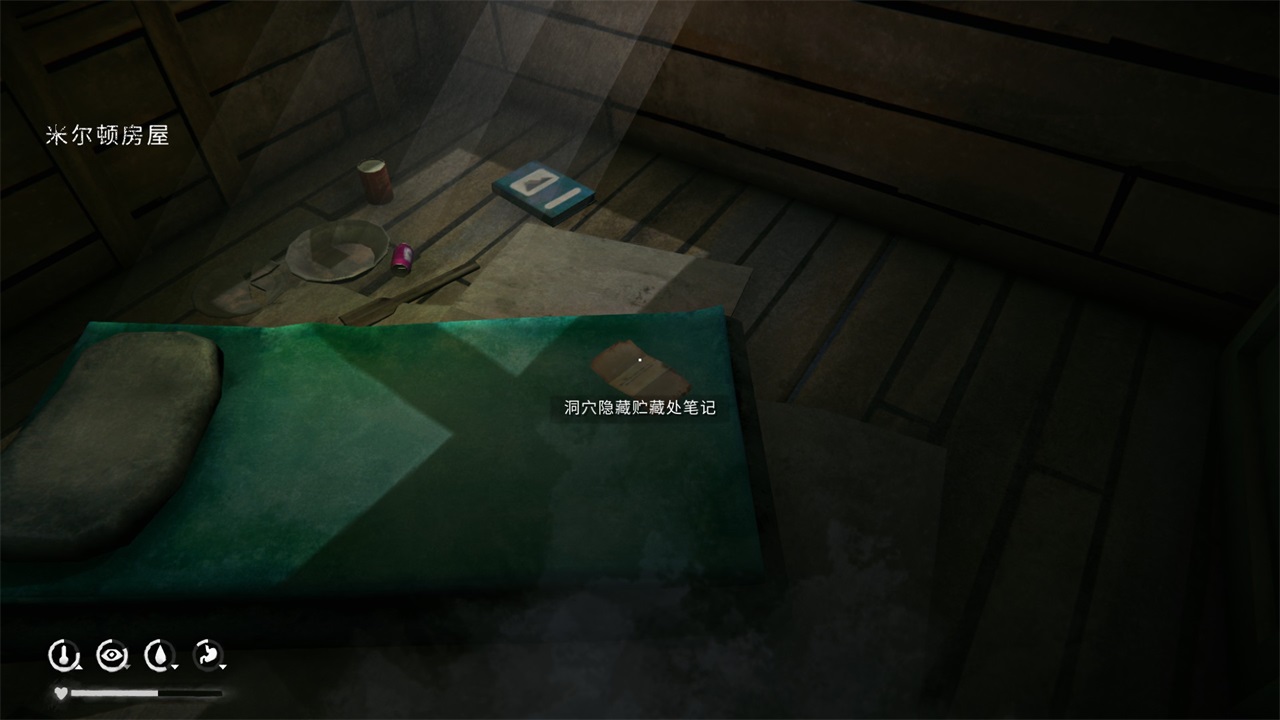 进来独栋房屋后,右边地铺上就有贮藏点纸条。