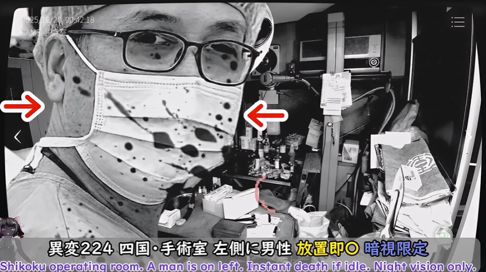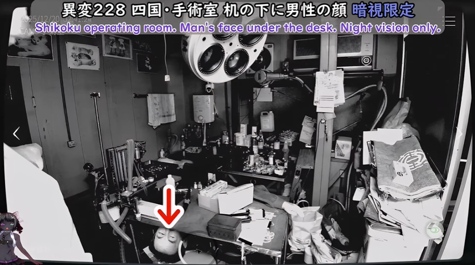 22、四国手术室,桌子下面的男人的脸,仅限夜视。