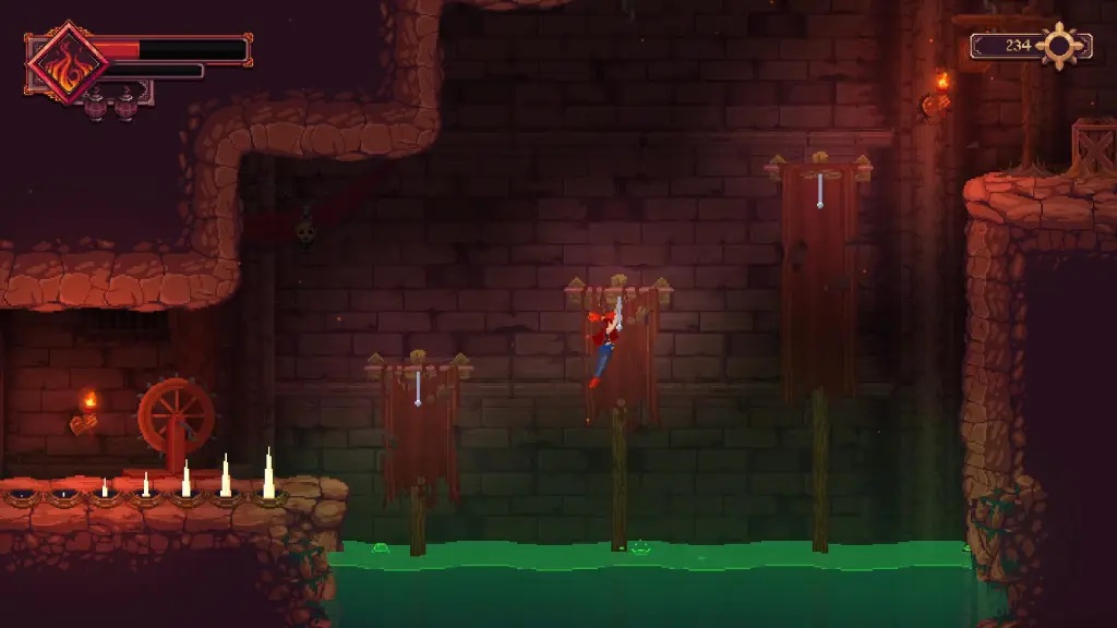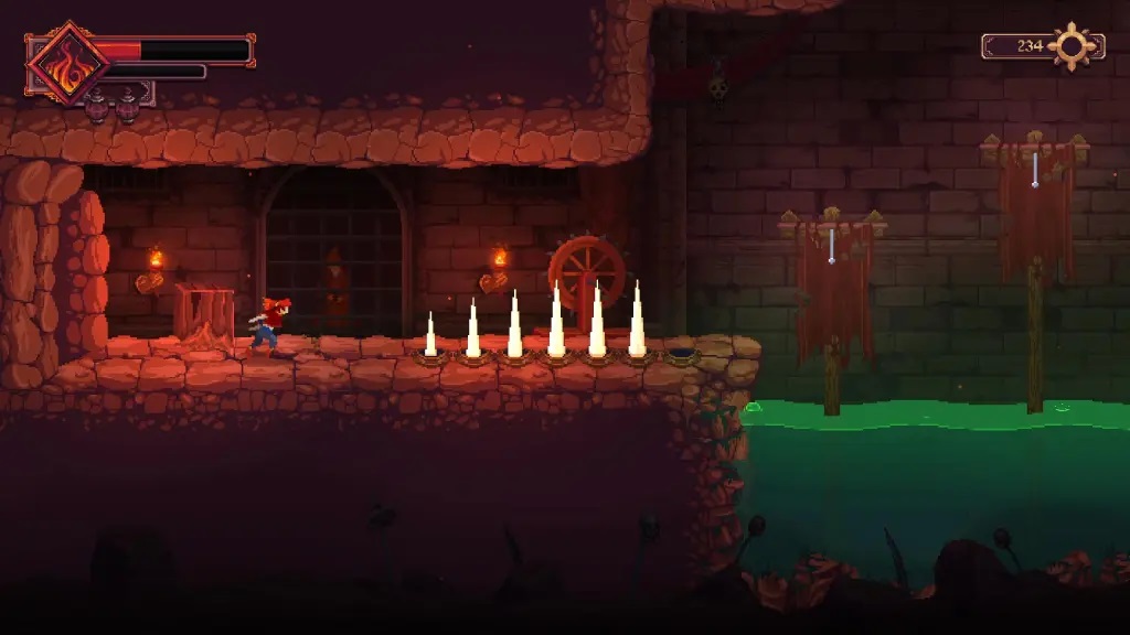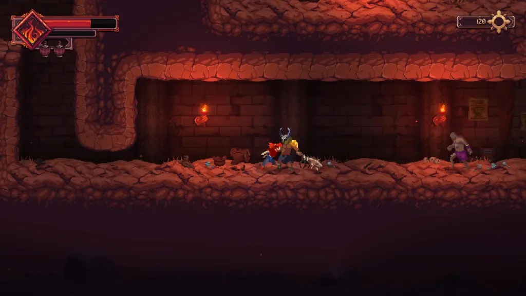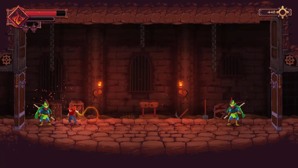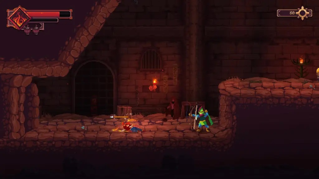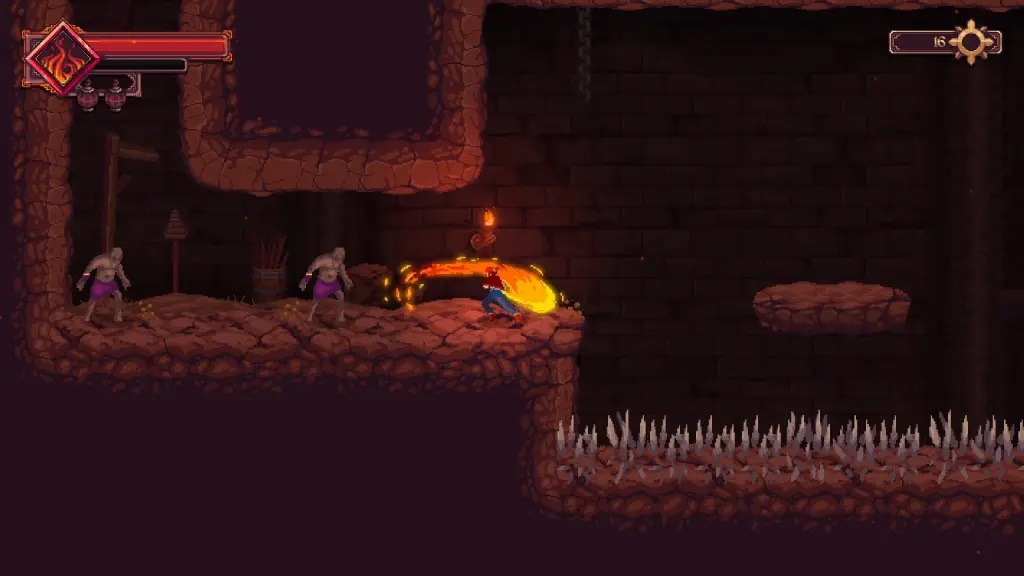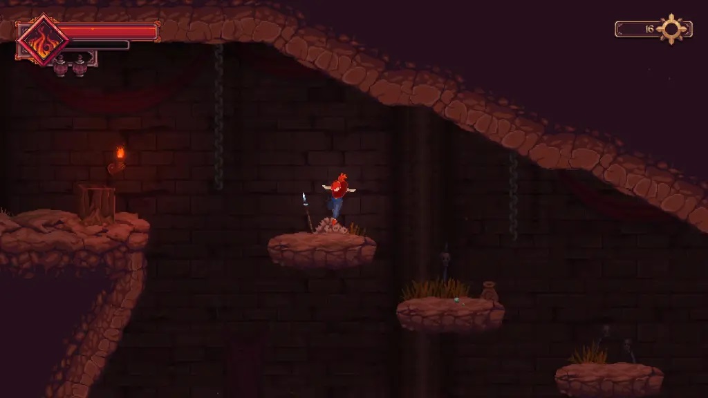 16、在下一个房间中,你会先遇到一名【弓箭手】,将其击败;其上方平台还有一名【持锤兵】,同样需要解决;