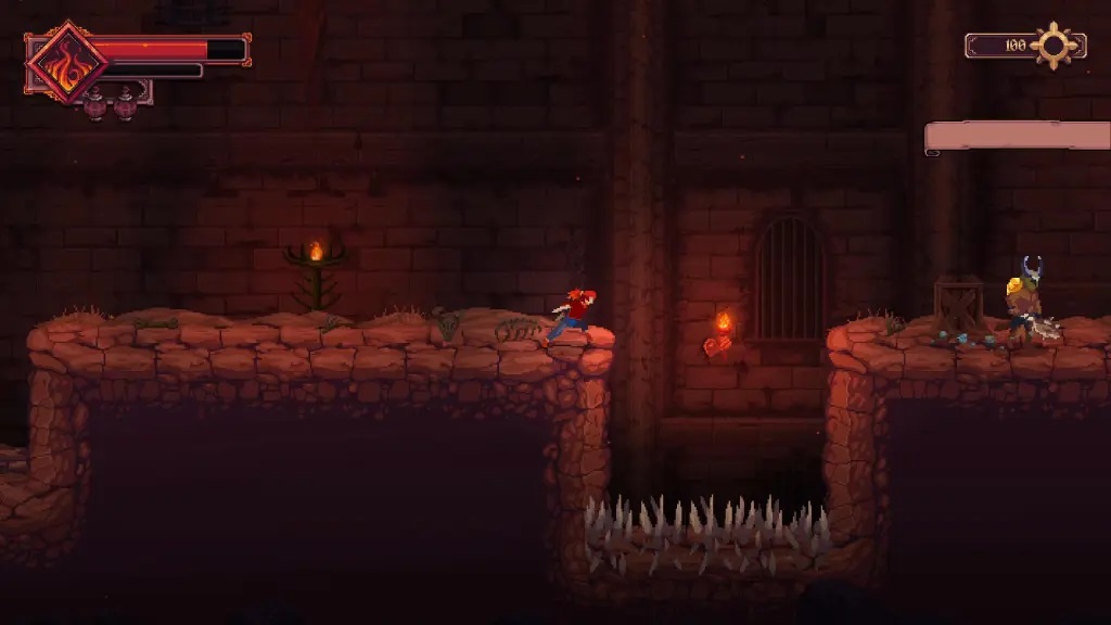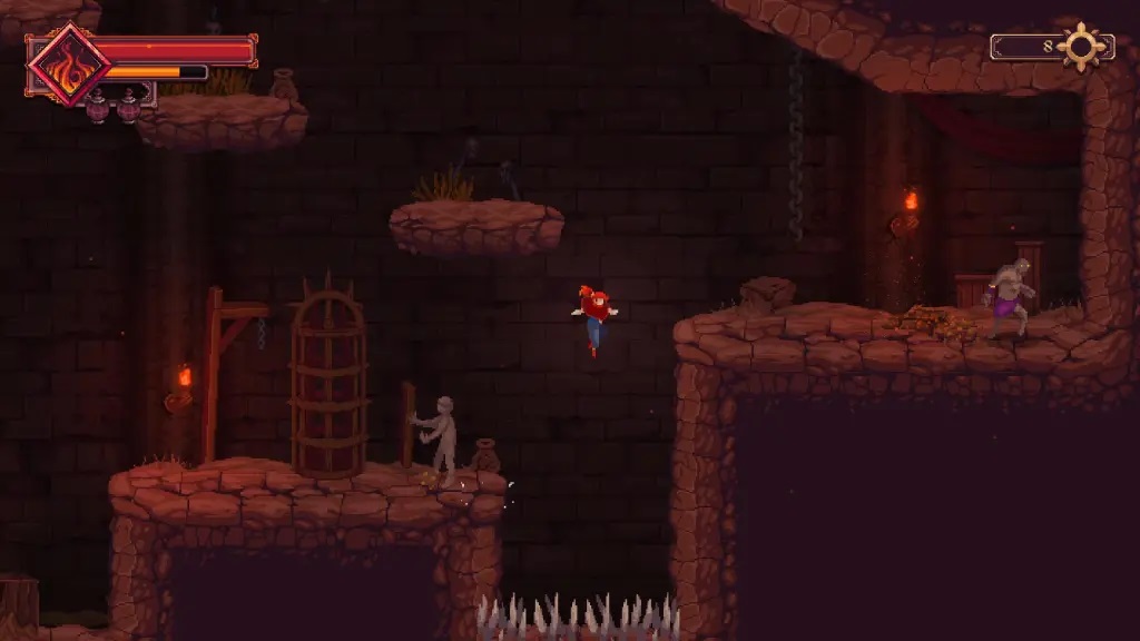 5、跳过尖刺陷阱,前往右侧平台,并消灭另一名敌人;