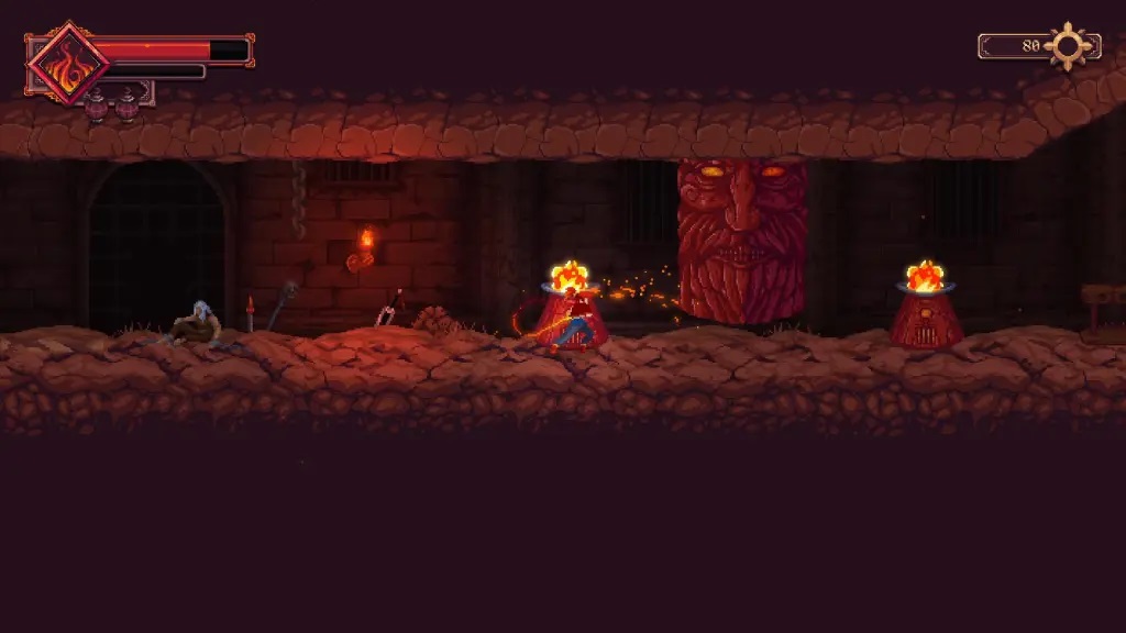 1、在【沙之监牢】醒来后,会先触发一段简短过场动画,Ophelia会用手中的火焰烧毁铁栏杆,正式开启探索流程;