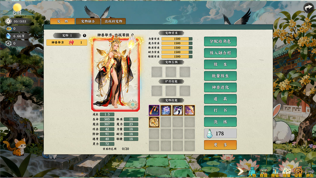 普通宠物、变异灵兽、上古神兽三大梯队,收集途径全开放,单机环境下人人可肝到神兽。支持技能格稳定开格,平民宠物也能通过技能组合比肩神兽。
