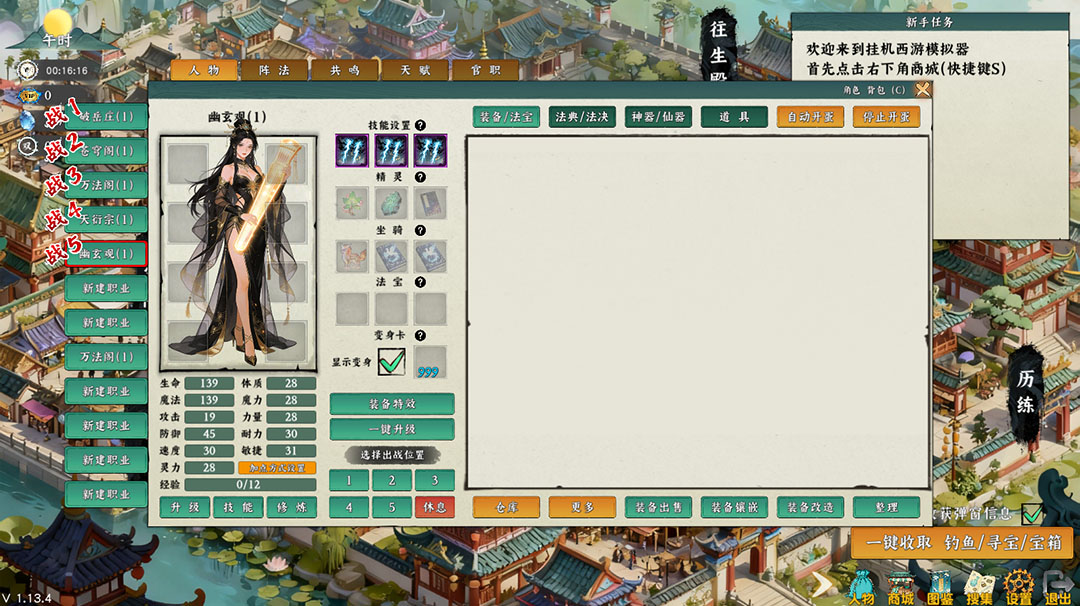 摒弃经典网游门派设定,打造专属西游职业体系:物理群攻、法术群攻、治疗辅助、封印控制,8 个职业定位清晰,技能贴合西游神话,新手可暴力开局,老手可策略搭配,适配不同挂机场景。