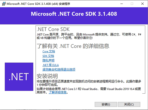 2、然后双击.NET Core 3.1.exe文件,安装游戏运行环境;