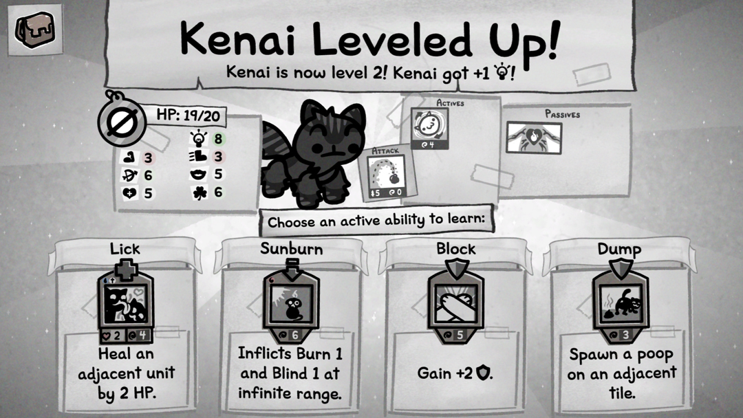 6、最后成功击败关卡内所有敌人即可通关,而且每次升级还可选择一项强化,以此来提升小猫属性和能力。