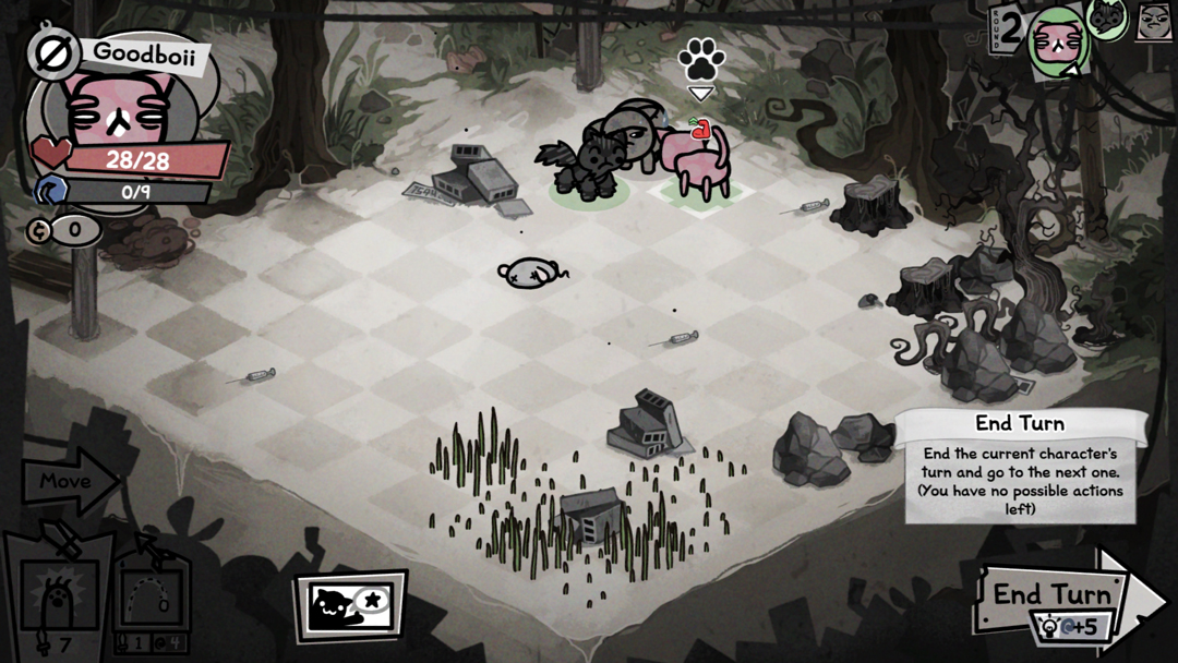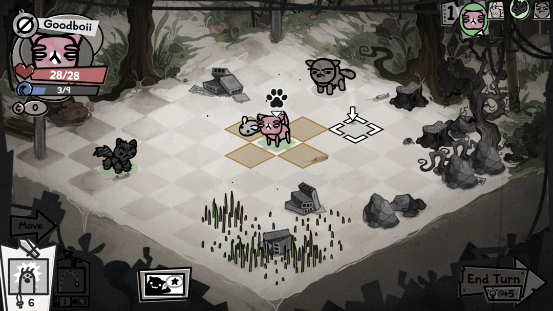 4、游戏采用回合制战术玩法,玩家需通过点击来让小猫进行移动和攻击;