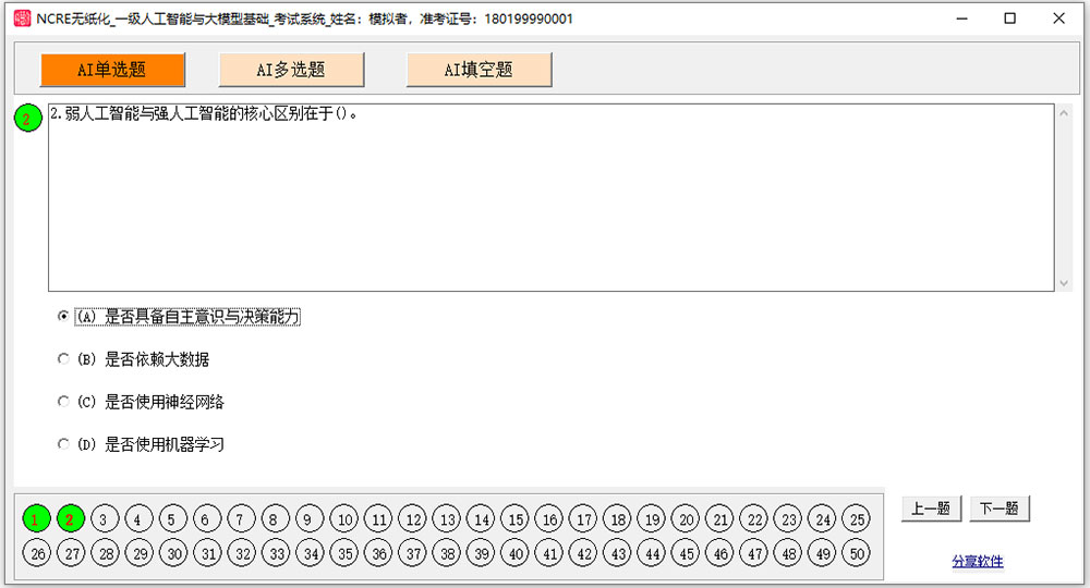 一级人工智能与大模型基础考试采用无纸化考试,上机操作。