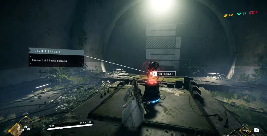 魔鬼交易(Devil's Bargain)是一种独特的增强物品。你可以在“虚空”(Void)中购买相应的升级,然后在你的游戏过程中可能出现一个特殊房间。当你走到房间尽头时,会发现一个特殊的红色发光物体。