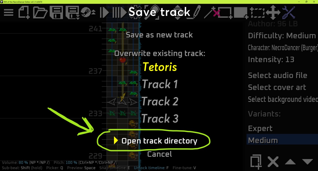-点击“打开”(或使用快捷键)进入曲目列表;