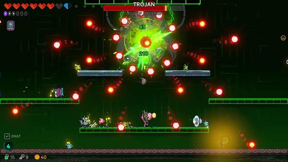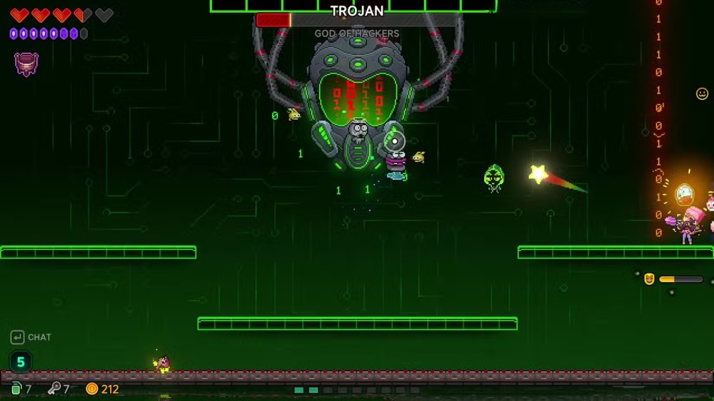 在BOSS战方面,击败Trojan是解锁 deeper layers的关键。战斗分为三个阶段,每个阶段都有不同的弹幕机制和策略要求。玩家需要灵活移动、躲避弹幕,并善用武器和道具来应对挑战。